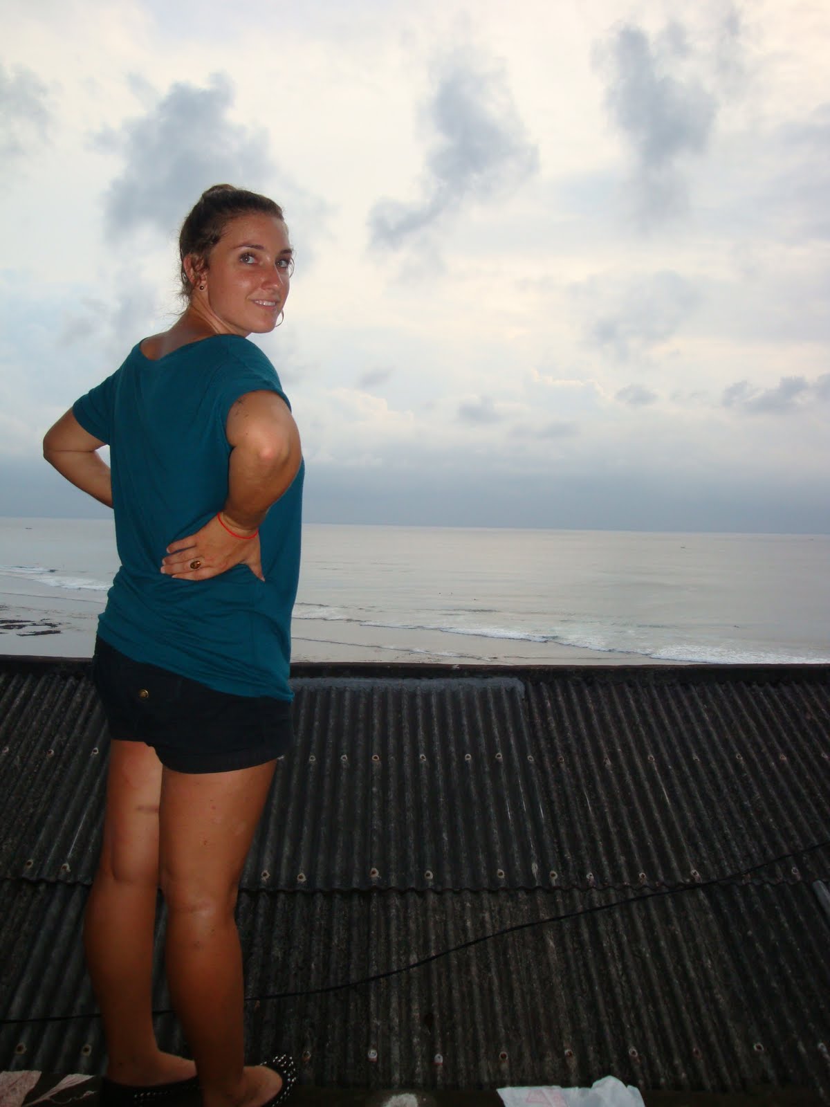 | Katy, overlooking Uluwatu beach and the surf mania below |